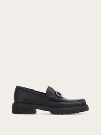 Saddle loafers with calfskin upper featuring a lush feel and a semi-matte finish. The round toe is emphasized by the raised topstitching on the apron, while the painted-finish Gancini accent adorns the saddle. Chunky extralight rubber sole with a rolled welt and a lug tread. These shoes have been crafted using the “Tubular” technique, which is exclusive to luxury shoes: the hand-stitching of the upper ensures exceptional softness and lightness. - Composition: calfskin - Made in ITALY - Product code: 028249 773850