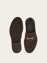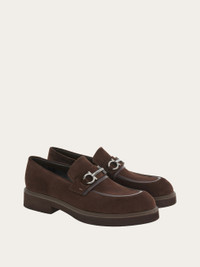 Metropolitan sophistication with a cool vibe: new suede loafers with calfskin details on the apron and saddle. The volume is full on the toe, with slight rounded detailing to create contemporary flair. The bold ultra-light rubber sole pairs with a triple rubber welt for a bolder shape. The titanium-finish Gancini accent is complemented by the flexible bar detail in the middle for outstanding comfort. - Composition: suede calfskin - Made in ITALY - Product code: 021965 766242