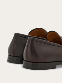 Formal-feel loafers with a soft calfskin upper and a double flat strap on the saddle detail adorned by a golden-finish Gancini accent. The richness of the leather is emphasized by the special construction of the apron, which is embraced by the structure of the upper. The almond toe and the leather sole with rubber heel finish off the design. - Composition: calfskin - Made in ITALY - Product code: 021688 774131