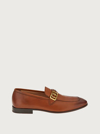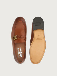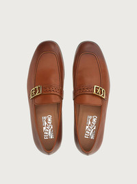 A perfect showcase of Ferragamo iconic details and artisanal skill. The sleek, elongated line of this loafer is made of fine Italian calf leather, with a woven strap across the upper, inspired by a wristwatch, held by a unique SF buckle. The leather used for the sole is naturally tanned using a slow vegetable dying process with lower environmental impact from reduced water and chemical consumption. - Composition: Calf leather - Made In ITALY