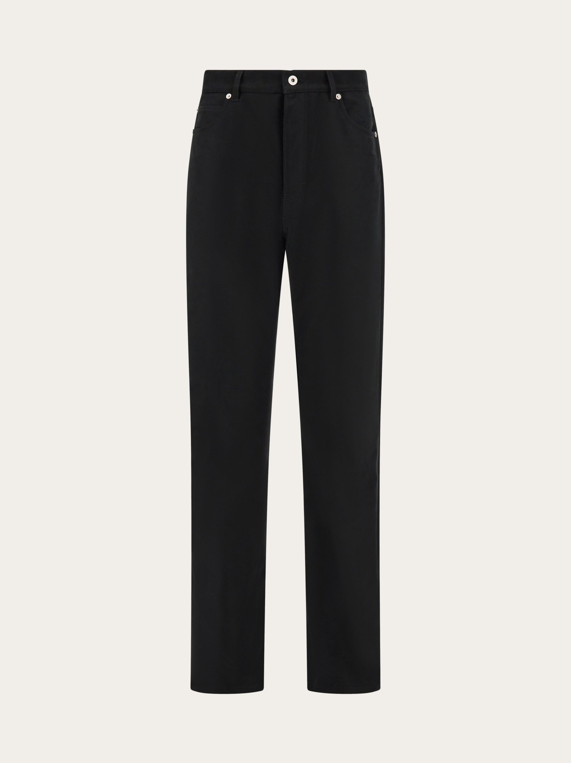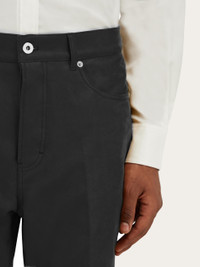 Made of pure cotton moleskin, these Ferragamo jeans have a soft, smooth feel. The iconic construction includes a regular git, with custom metal rivets and buttons, rounded pockets on the front and patch pockets on the back below the peplum which ensures a perfect fit. Leather tab with contrasting logo. - Composition: 100% cotton - Made in ITALY - Product code: 143476 778365