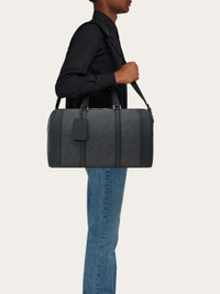 Perfect for weekend getaways or business trips, this duffel bag is made of branded jacquard fabric with soft calfskin details. This spacious hold all features covered handles sand a long shoulder strap for cross body wear. The painted metal zip opens to reveals a lined interior with zipped pocket for perfect organization of personal effects. An address tag hangs from the tonal top handle. - height 9.4 IN length 17.7 IN width 10.6 IN - Composition: polyurethane, calfskin - Made in ITALY - Product code: 241649 780847