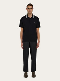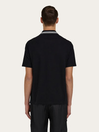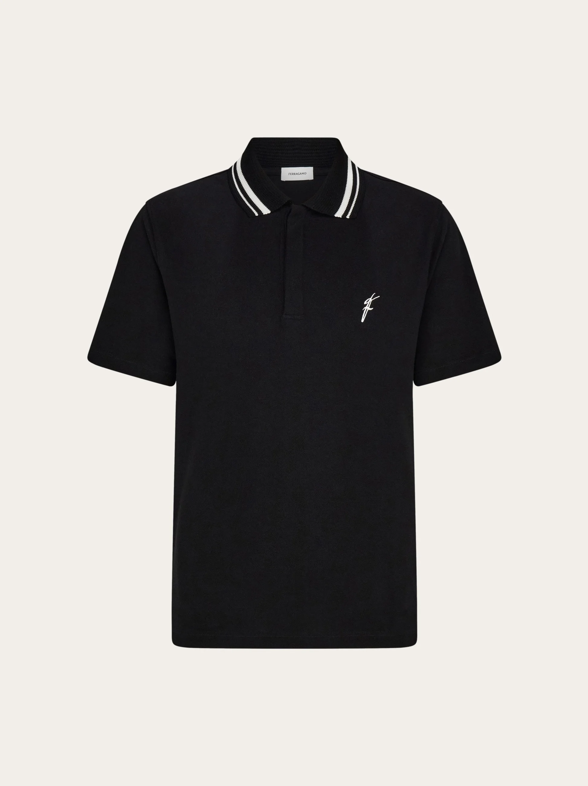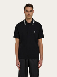 Luxurious materials and attention to detail define this cool new iteration of the Ferragamo polo shirt. Made of organic cotton, it has ribbed trims on the collar and sleeves, jacquard details on the neck, and an embroidered F on the chest. The hidden placket is a unique feature that adds a touch of formality. - Composition: 100% organic cotton - Made in ITALY - Product code: 122417 783743