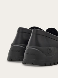This penny loafer elevates your city looks with its bold Air Trek rubber sole that wraps around the entire construction. The classic rounded profile is finished with apron-toe seams and a delicate 3D Gancini detail on the side. - Composition: calfskin - Made in ITALY - Product code: 02A017 784417