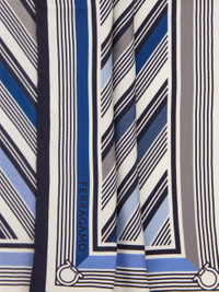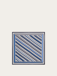 The pattern on this pure silk pocket square feels both strong and stylish. With Gancio outlines at the corners and a printed logo on the bottom edge, regimental stripes fill the center of the frame. - length 16.5 IN width 16.5 IN - Composition: 100% silk - Made in ITALY - Product code: 520140 785235