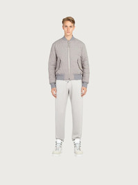 Invest in a blouson, a timeless staple that is practical and super chic for the modern man. Versatile and super easy to combine, its main material and internal lining are made from 100% certified post-consumer polyester and its padding is made from a blend of polyester and certified recycled silk fibres. The lining is stitched with a fabulous Gancio pattern for an eye-catching twist. The cut remains faithful to the classic model, with side flap pockets and a full zip at the front, made from recycled materials including brass, steel, and recycled polyester, while the neck and cuffs feature a rib knit made of wool derived from responsible sources with high standards of animal welfare and land stewardship. Logo label is made from 100% certified post-consumer polyester. - Composition: 100% certified post-consumer recycled polyester - Made In ITALY