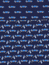 Crafted for racing aficionados, this pure silk tie showcases a dual print inspired by classic car competitions. The front is brought to life with waving checkered flags, while the back reveals a more open, relaxed pattern. - Composition: 100% silk - Made in ITALY - Product code: 351363 789408