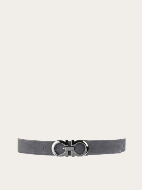 A timeless staple of the masculine wardrobe, reimagined in today’s most refined tones: this belt is crafted from calfskin hammered and buffed by hand for a shaded, two-tone effect. The double Gancini buckle and reversible construction make it a surprisingly versatile piece. The adjustable length allows for a more personalized fit and style. We invite you to check our size guide for more information. - height 1.3 IN - Composition: hammered calfskin - Made in ITALY - Product code: 679710 791932