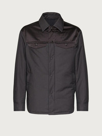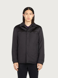 Innovative and cool, cozy and chic. This new over shirt in technical satin is the perfect balance of the structured shirt with the comfort of a padded jacket. The geometric stitching on the back, the pockets with shaped flaps and the snap buttons on the front define an innovative design, a sophisticated hybrid between sportswear and urban style. - Composition: 66% cotton, 34% polyester - Made In ITALY