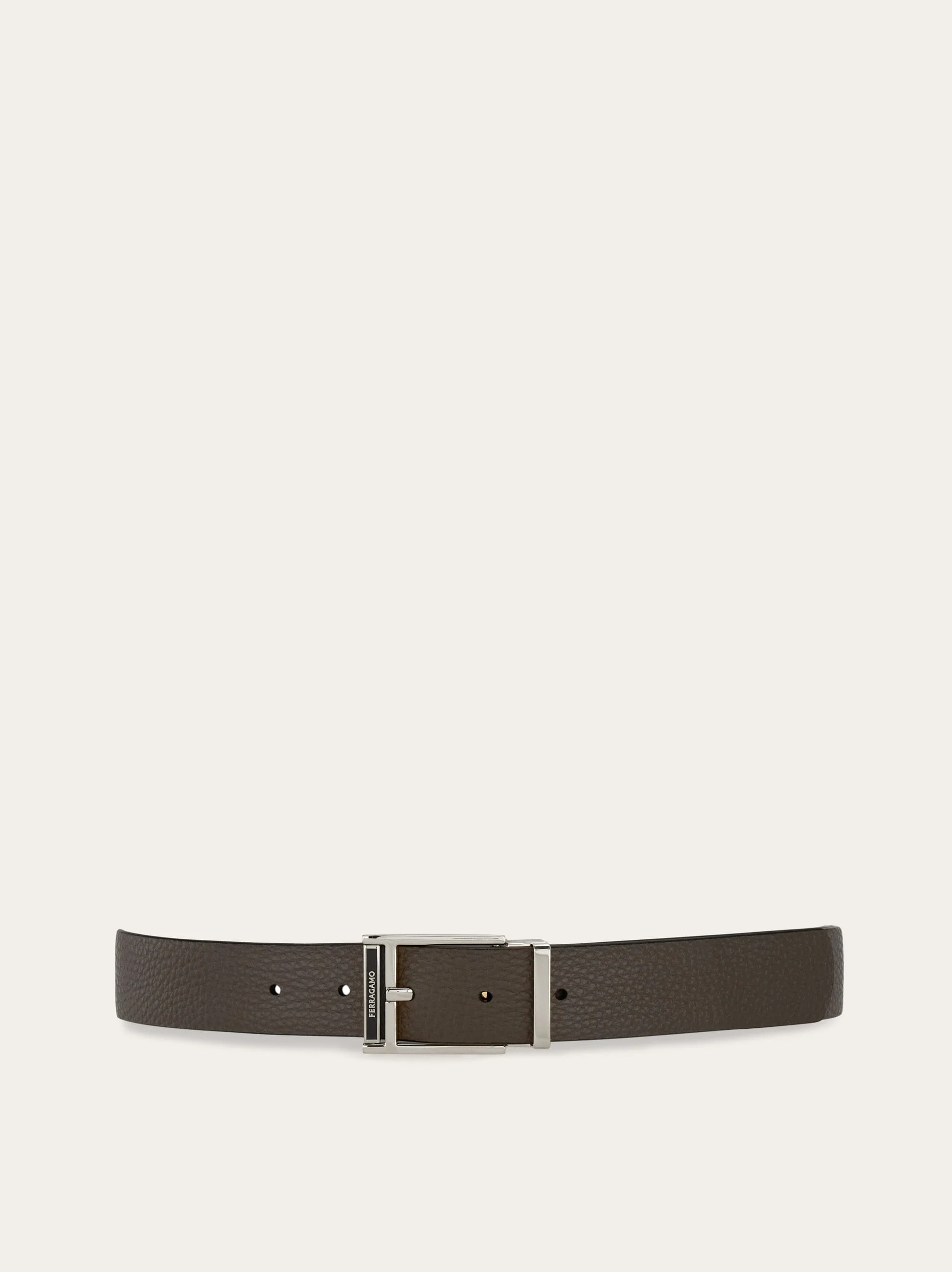 A new take on metropolitan elegance, this naturally grained calfskin belt features a reversible two-tone design for maximum versatility. The palladium-finish geometric buckle is accented with a front resin insert and a Ferragamo signature detail. The adjustable length allows for a more personalized fit and style. We invite you to check our size guide for more information. - height 1.2 IN - Composition: calfskin - Made in ITALY - Product code: 670571 786349