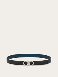 Naturally refined, this reversible, two-tone belt is the versatile finishing touch for any look. Crafted from grained calfskin, it features a palladium-finish buckle with double Gancini, connected at the center by an asymmetric motif. The adjustable length allows for a more personalized fit and style. We invite you to check our size guide for more information. - height 1.1 IN - Composition: hammered calfskin - Made in ITALY - Product code: 670644 791060