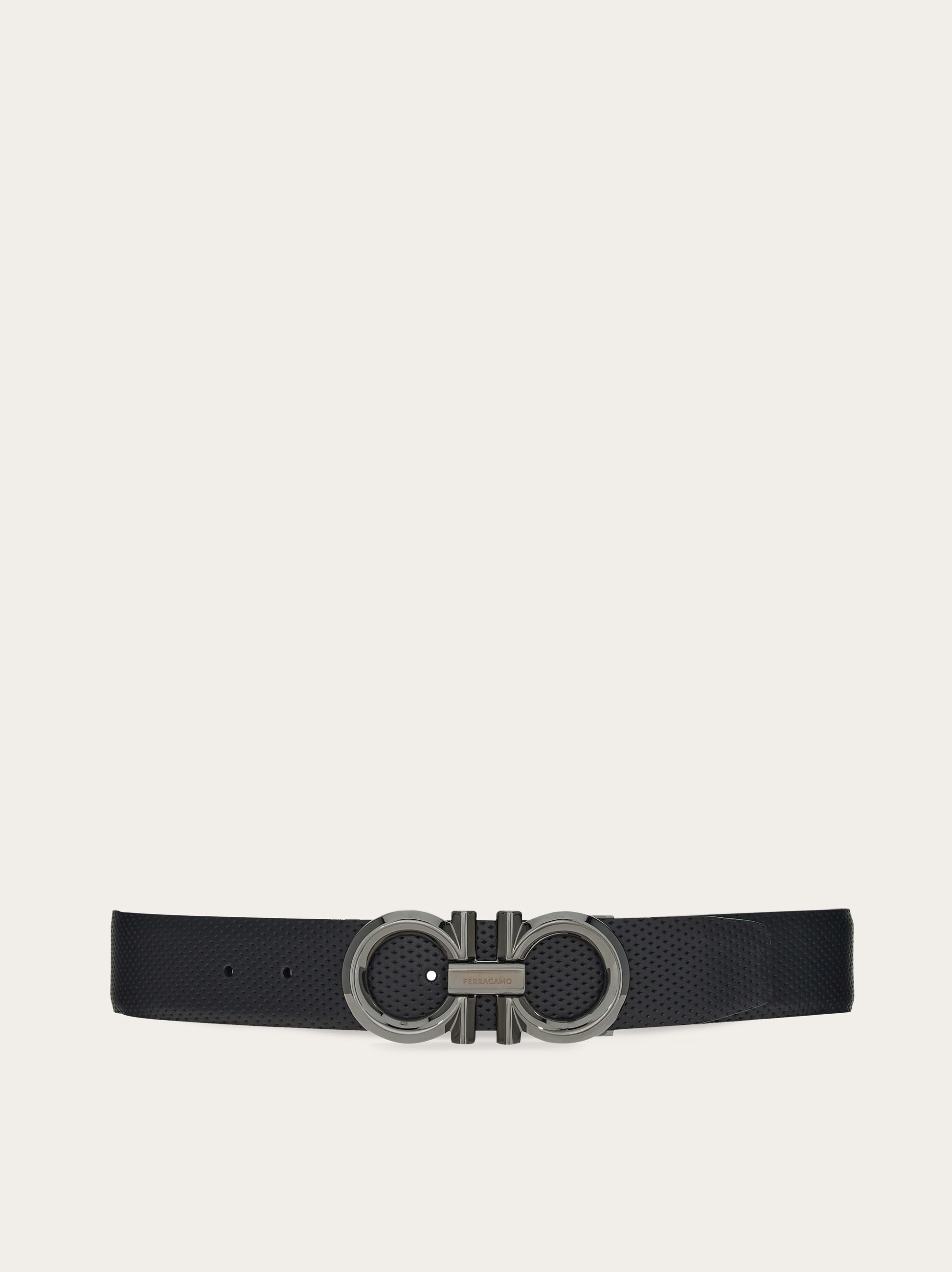 A modern update on understated elegance – this belt is fashioned from hammered calfskin leather with an exquisitely soft texture. The signature Gancini buckle is sculpted from ruthenium finished metal for a touch of sophistication. The adjustable length allows for a more personalized fit and style. We invite you to check our size guide for more information. - height 1.3 IN - Composition: hammered calfskin - Reversible and adjustable belt with detachable buckle - Made in ITALY - Product code: 679939 759032