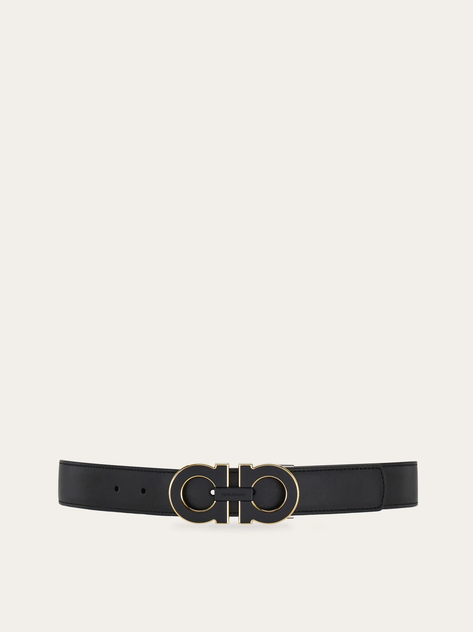 A contemporary take on the classic Ferragamo belt, featuring contrast stitching for a relaxed feel and a reversible design for ultimate versatility. The tonal resin Gancini buckle is accented with a contrasting gold border for a refined finish. The adjustable length allows for a more personalized fit and style. We invite you to check our size guide for more information. - height 1.2 IN - Composition: calfskin - Made in ITALY - Product code: 670460 786992