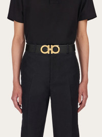 At once timeless, elegant, and luxurious – this belt is among Ferragamo’s most iconic pieces. All thanks to the signature Gancini buckle sculpted from gold-tone metal and accented with the brand’s logo lettering for that extra special touch. The adjustable length allows for a more personalized fit and style. We invite you to check our size guide for more information. - height 1.3 IN - Composition: calfskin - Reversible and adjustable belt with detachable buckle - Made in ITALY - Product code: 675542 586940