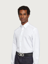 Reversible, two-tone belt made of soft natural grain leather with a rich finish. The golden Gancio buckle features an exclusive processing that is used to create a net-effect engraving for a refined finish. The adjustable length ensures the perfect fit. - Composition: calf leather - Made In ITALY