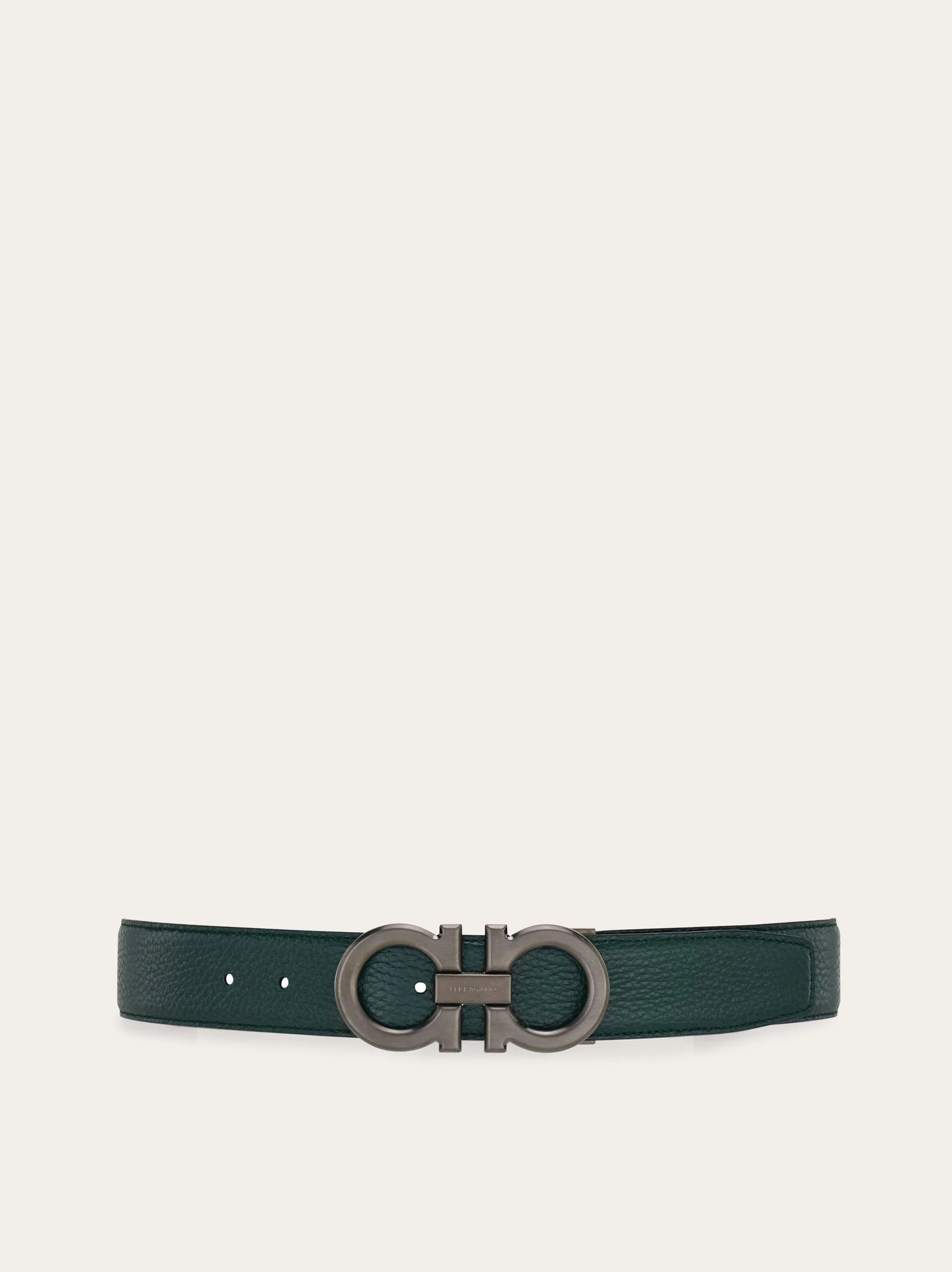 Keep it simple. This minimal look belt is the height of contemporary chic. Made of hammered calf leather, the strap is reversible for dual styling options. The ruthenium finish Gancini buckle sets off the look. The adjustable length allows for a more personalized fit and style. We invite you to check our size guide for more information. - height 1.3 IN - Composition: hammered calfskin - Made in ITALY - Product code: 679710 785975
