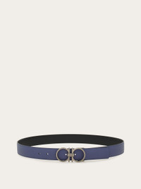 A new belt with a sleek metropolitan vibe, featuring a reversible two-tone design for effortless versatility. The slim-profile Gancini buckle in a ruthenium finish adds a modern, refined touch. The adjustable length allows for a more personalized fit and style. We invite you to check our size guide for more information. - height 1.2 IN - Composition: hammered calfskin - Made in ITALY - Product code: 670459 786291