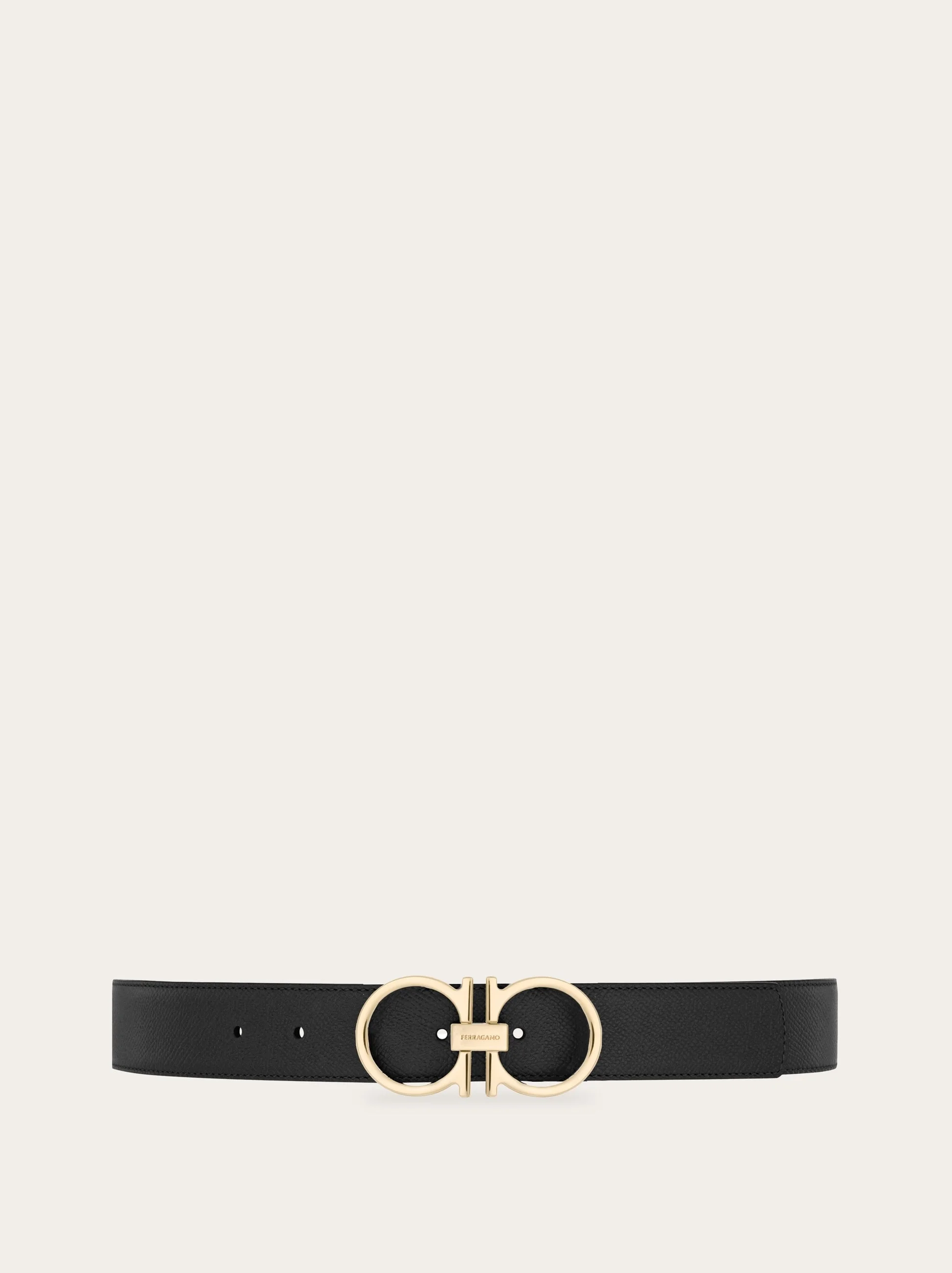 A new belt with a sleek metropolitan vibe, featuring a reversible two-tone design for effortless versatility. The slim-profile Gancini buckle in a golden hue adds a modern, refined touch. The adjustable length allows for a more personalized fit and style. We invite you to check our size guide for more information. - height 1.2 IN - Composition: hammered calfskin - Made in ITALY - Product code: 670459 783264