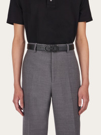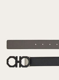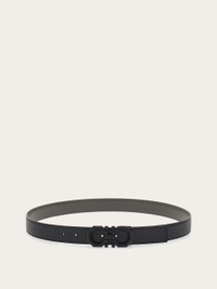Reversible, adjustable Ferragamo belt featuring an octagonal shaped Gancini buckle and rectangular, palladium tone central link with signature. The leather shaft has a different finish on each side: one side is smooth, and on the other, the leather is tumbled and dyed with aniline for a sumptuous texture. The adjustable length allows for a more personalized fit and style. We invite you to check our size guide for more information. - height 1.2 IN - Composition: smooth and tumbled calfskin - Made in ITALY - Product code: 670266 765786