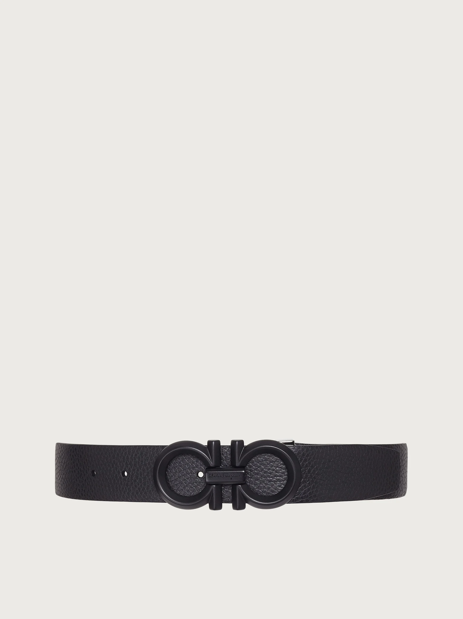 Classic elegance meets modern minimalism in this reversible Gancini belt. Crafted from natural grained calfskin leather with a beautifully soft texture, it fastens with a black metal buckle, which lends the look a masculine and sophisticated touch. The adjustable length allows for a more personalized fit and style. We invite you to check our size guide for more information. - height 1.3 IN - Composition: textured calfskin - Made in ITALY - Product code: 679939 694745