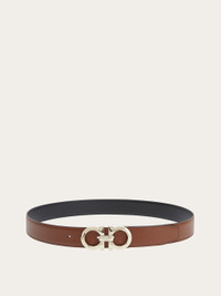 A modern take on the Maison's most recognizable belt, with a reversible two-tone leather strap, in a hammered finish. The golden Gancini has a faceted finish, for a refined touch. The adjustable length allows for a more personalized fit and style. We invite you to check our size guide for more information. - height 1.3 IN - Composition: hammered calfskin - Made in ITALY - Product code: 67A161 770675