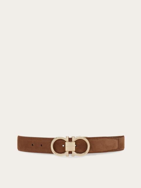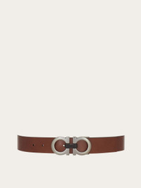 Luxurious with an urban edge, this new Ferragamo belt is made of soft calfskin leather. One side is printed with a lizard motif, and the other, in a contrasting tone, has a smooth, supple finish. The Gancio buckle with contrasting central bit adds an original twist. The length is adjustable. Please see the size guide for further details. - height 1.3 IN - Composition: calfskin - Made in ITALY - Product code: 670391 781687