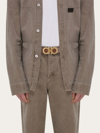 Keep it simple. This minimal look belt is the height of contemporary chic. Made of smooth calf leather, the strap is reversible for dual styling options. The golden finish Gancini buckle sets off the look. The adjustable length allows for a more personalized fit and style. We invite you to check our size guide for more information. - height 1.3 IN - Composition: calfskin - Made in ITALY - Product code: 679710 786991