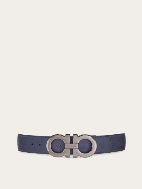 This reversible two-tone belt is designed for versatile styling, featuring a Gancini buckle in a sleek ruthenium finish. The strap contrasts in color and texture, offering a dynamic, customizable look. The adjustable length allows for a more personalized fit and style. We invite you to check our size guide for more information. - height 1.5 IN - Composition: calfskin - Made in ITALY - Product code: 670270 786004
