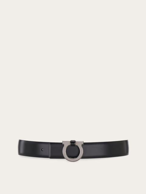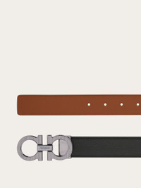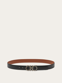 A modern take on Ferragamo’s most iconic belt, featuring a reversible two-tone design for ultimate versatility. The Gancini buckle in a ruthenium finish is refined with vertical knurling for a distinctive touch. The adjustable length allows for a more personalized fit and style. We invite you to check our size guide for more information. - height 1.2 IN - Composition: hammered calfskin - Made in ITALY - Product code: 670574 786347