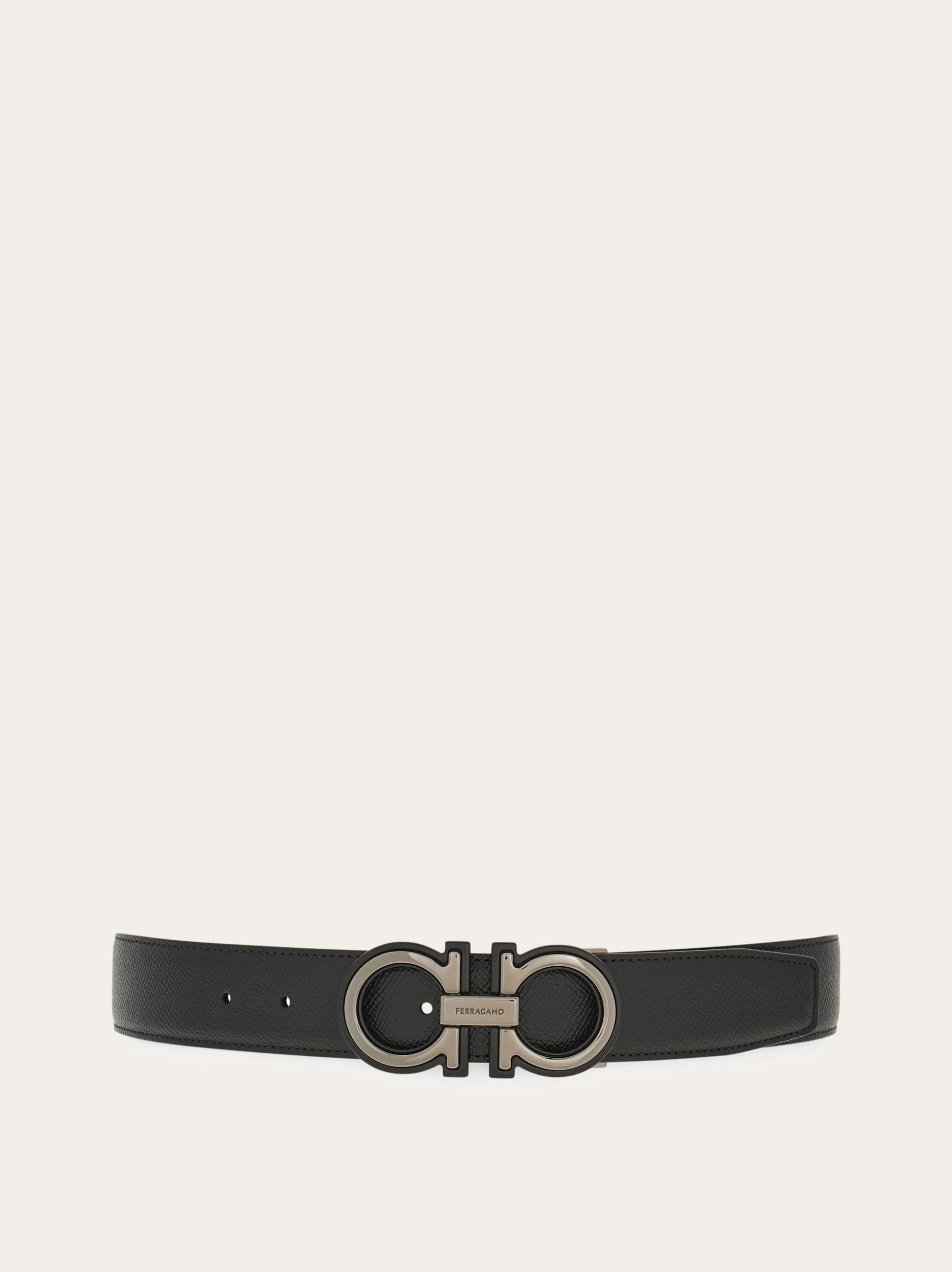 Instantly recognizable, the Gancio buckle is the star of this new Ferragamo belt. The buckle is hollowed out, with a darker finish on the outside, and lighter tone in the center, a distinctive detail that pierces the two tone hammered calfskin leather shaft. The length is adjustable. Please see the size guide for further details. - height 1.3 IN - Composition: hammered calfskin - Made in ITALY - Product code: 67A254 780269