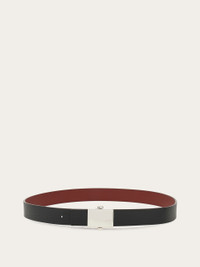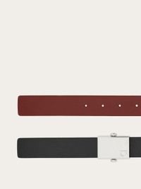 Reversible, two-tone belt with one side smooth and one with a hammered finish. The double Gancini buckle features a square center plaque with embossed signature. The adjustable length allows for a more personalized fit and style. We invite you to check our size guide for more information. - height 1.1 IN - Composition: smooth and hammered calfskin - Made in ITALY - Product code: 670456 783172