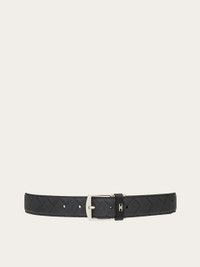 Adjustable, reversible belt with an urban appeal. One side is coated in fabric featuring the Ferragamo monogram print, and the other is made of smooth calfskin with a natural, grainy texture. A palladium buckle with a matte finish, and custom Gancio belt loop complete the look. The length is adjustable. Please see the size guide for further details. - height 1.2 IN - Composition: calfskin and coated fabric - Made in ITALY - Product code: 670418 780441