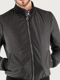 Versatile, luxurious, sophisticated. This nappa blouson combines a sporty look with the luxurious softness of Italian nappa leather, in a reversible design that makes it perfect for any occasion. The zip fastening has a personalized puller with a Gancini, while the Mandarin collar and the knitted edges add a sporty and current touch. Perfect for changing your style at any time of the day. - Composition: lamb nappa - Made In ITALY