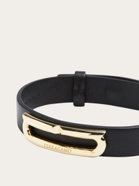 The classic bracelet from Ferragamo has been made even more current by the palladium-finish brass Gancini accent. The elongated shape transforms it into a graphic detail with a current feel. Adjustable fastening on the back. - Composition: calfskin and brass - Made in ITALY - Product code: 770328 764616