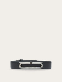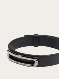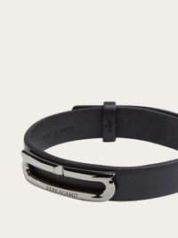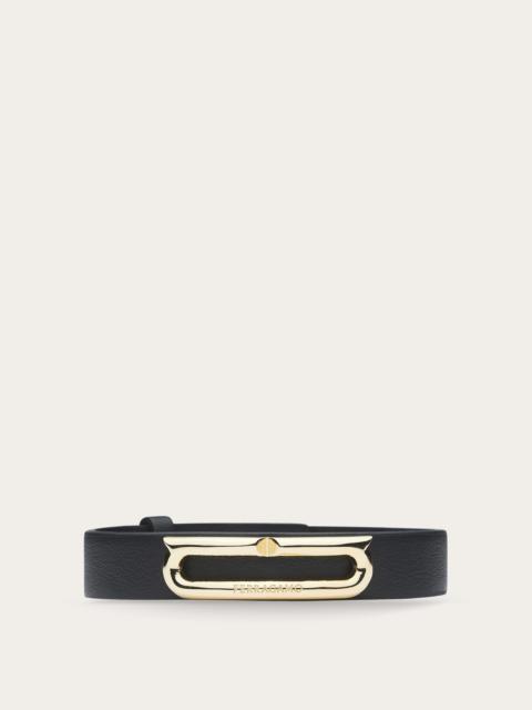 The classic bracelet from Ferragamo has been made even more current by the palladium-finish brass Gancini accent. The elongated shape transforms it into a graphic detail with a current feel. Adjustable fastening on the back. - Composition: calfskin and brass - Made in ITALY - Product code: 770328 764615