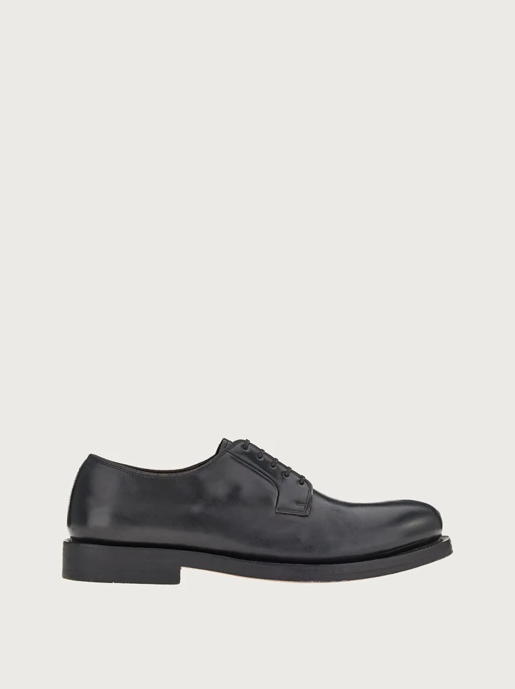 Up to date with a preppy twist, this Derby shoe is cool, comfy and luxurious. Made in Italy by Italian artisans, it is cut from rich leather, has a five-hole fastening, rolled welt and a thick leather sole designed to ensure complete flexibility. The shoe is crafted according to the world renowned ‘Tramezza’ construction method, which is synonymous with craftsmanship and excellence. The process involves 160 distinct phases and over 6 hours of manual work by an expert shoemaker, to combine strength and durability with flexibility and comfort. - Composition: calf leather - Made In ITALY