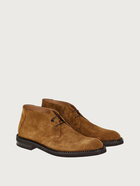 Smooth outline with rich details, this desert boot is the perfect shoe for casual daywear, now and forever. Inspired by styles from the Ferragamo 80’s archives, the upper is made of soft, Italian calf leather, punctuated by tonal Gancio eyelets and slim laces. The stand out feature is the dented welt on the sole, which brings an edgy vibe to the smooth lines. Rubber sole with a large Gancio silhouette on the heel. - Composition: Calf leather - Made In ITALY