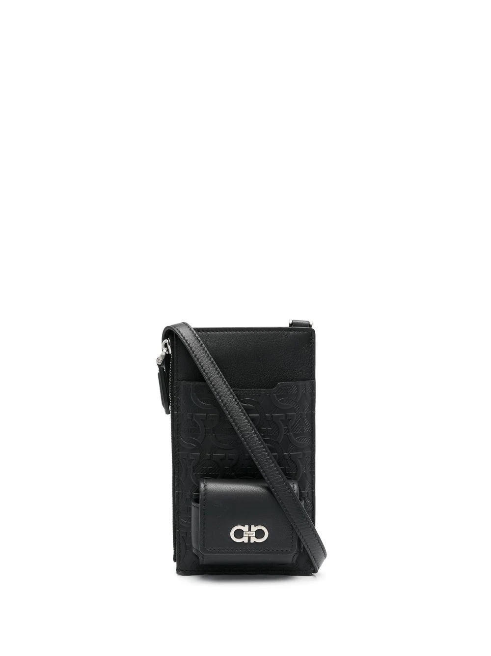 Gancini-plaque phone bag from SALVATORE FERRAGAMO featuring black, calf leather, Gancini plaque and top zip fastening. Highlights - Black - Calf leather - Gancini plaque - Top zip fastening Made in Italy Composition outer: Calf Leather 100% Product measurements for size: One Size Length: 9.5 cm (3.7 in) Strap: 60 cm (23.6 in) Width: 17 cm (6.7 in)