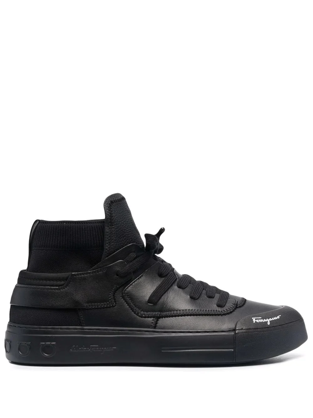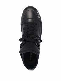 high-top leather sneakers black leather panelled design logo print to the front tonal stitching round toe front lace-up fastening ankle-length flatform sole Made in Italy Composition Sole: Rubber 100% Outer: Fabric 100%, Leather 100% Lining: Fabric 100% SIZE & FIT Measurement HEEL 1.18 in(3 cm) HEIGHT 4.33 in(11 cm) Sole height 1.18 in(3 cm)
