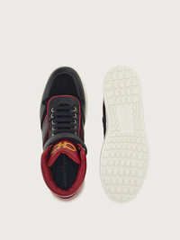 Street creative, deluxe materials, sports appeal: the new basketball style sneaker interprets metropolitan trends inspired by vintage models. The suede leather upper has leather inserts in bright colors and contrasting piping for a dynamic feel. The iconic Gancini placed on the tongue and the signature on the strap offer perfect recognition with an iconic twist. Ultra light rubber sole with personalized tread. - Composition: Calf leather and suede - Made In ITALY