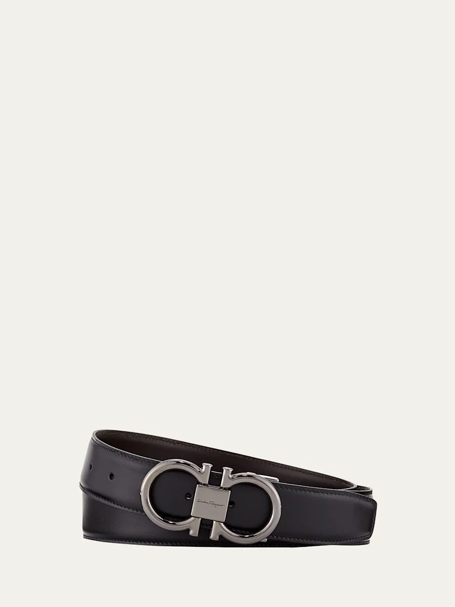 Salvatore Ferragamo reversible leather belt. Adjustable gunmetal Double-Gancio buckle. Approx. 1.5"W. Made in Italy. Shipping Direct from Vendor, usually ships within 7 business days. Online Inquiries: BGS21_N8T12| Store Inquiries: #2502091