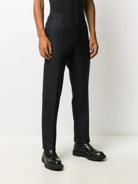 pinstriped straight-leg trousers
