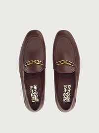 A new modern classic. This contemporary twist on the gentlemen’s loafer sees a deconstruction of the formal style, with an almond toe and a lowerable heel to create a slip on moccasin. Made of the softest lamb nappa, it features a jacquard fabric lining with a striking Gancini pattern, and an antique gold Gancio bit across the upper with a retro feel. The slim leather sole features a rubber island for flexibility and grip on every surface. - Composition: lamb nappa - Made In ITALY
