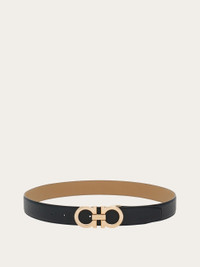 Unmistakably Ferragamo, this Reversible and adjustable belt is made of tumbled calfskin and dyed with natural anilines to enhance its sumptuous, grainy finish. The contrasting tones on each side open up several styling options. Rose gold tone Gancio buckle. The adjustable length allows for a more personalized fit and style. We invite you to check our size guide for more information. - height 1.3 IN - Composition: calfskin - Made in ITALY - Product code: 679710 764161
