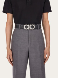 Unmistakably Ferragamo. The palladium tone Gancio buckle is the star of this reversible leather belt. One side is smooth, and on the other, the leather is tumbled and dyed with aniline for a sumptuous texture. The adjustable length allows for a more personalized fit and style. We invite you to check our size guide for more information. - height 1.5 IN - Composition: calfskin - Made in ITALY - Product code: 670270 765034