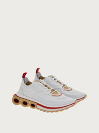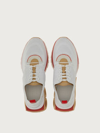 Technical knit sneakers with suede and nubuck details. The soft, second-skin-effect upper pairs with a bold sole featuring branded details and the Gancini silhouettes on the sides that create a filled/void effect. The knit of the upper is made using 100% recycled post-consumer polyester yarn, while the lining and back lining are made from leather tested and verified to have been produced using a chrome-free tanning process. Fussbett bandage lining instead is in leather tested and verified to have been produced using a metal-free tanning process, strobel felt is made using 20% recycled pre-consumer polyester fibres and sewing thread is made from 100% post-consumer recycled polyester. - Composition: fabric - Made In ITALY