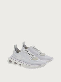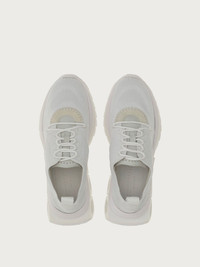 Technical knit sneakers with suede and nubuck details. The soft, second-skin-effect upper pairs with a bold sole featuring branded details and the Gancini silhouettes on the sides that create a filled/void effect. The knit of the upper is made using 100% recycled post-consumer polyester yarn, while the lining and back lining are made from leather tested and verified to have been produced using a chrome-free tanning process. Fussbett bandage lining instead is in leather tested and verified to have been produced using a metal-free tanning process, strobel felt is made using 20% recycled pre-consumer polyester fibres and sewing thread is made from 100% post-consumer recycled polyester. - Composition: fabric - Made In ITALY