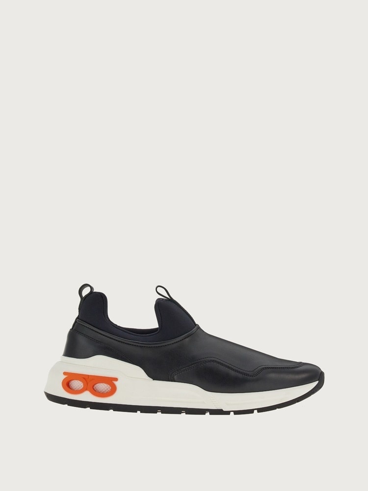 Easy-on, easy chic sneaker with a sleek outline and Ferragamo details. The masters of creative flair and quality craftsmanship have developed a refined, dynamic twist on the classic sneaker; pair it with tailored trousers or your favorite denim for an effortlessly stylish look. The ultra-light chunky sole features a double Gancio eyelet on the side, a wink to its creator. - Composition: calf leather and neoprene - Made In ITALY