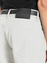 Brilliant bright shades from this season’s collection: new take on the classic five pocket trouser with an original cut, tonal stitching and customized leather patch on the back. Straight leg and 18cm hem for a young, metropolitan look. - Composition: 100% cotton - Made In ITALY