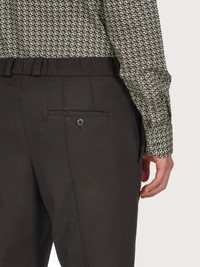 The coolest trouser of the season, easy to wear and ideal for a stroll in the city or a contemporary business look. The masters of luxury elegance have created an innovative cut that features a drawstring waist, with a fixed wool belt with copper buckle. On the right sits a double entry pocket, with vertical side pockets and jet pockets on the back. A new interpretation of urban style, wear with a patterned shirt for a striking look. - Composition: 97% pure virgin wool, 2% polyamine, 1% elastane - Made In ITALY